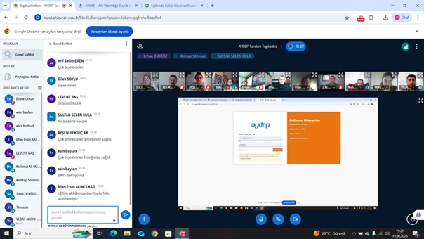Tanıtım toplantısı, Eğitimde Kalite Güvence Sistemi Koordinatörlüğü üyesi Doç. Dr. Sultan Selen Kula ve AYDEP Sistem Destek Ofisi Başkanı Öğr. Gör. Erhan Dürüst tarafından yapıldı. Sunum kapsamında AYDEP'in teknik altyapısı, işleyişi ve kalite güvencesine katkı sağlayan yönleri hakkında bilgi verilirken; sistemin kullanımı uygulamalı olarak da gösterildi.