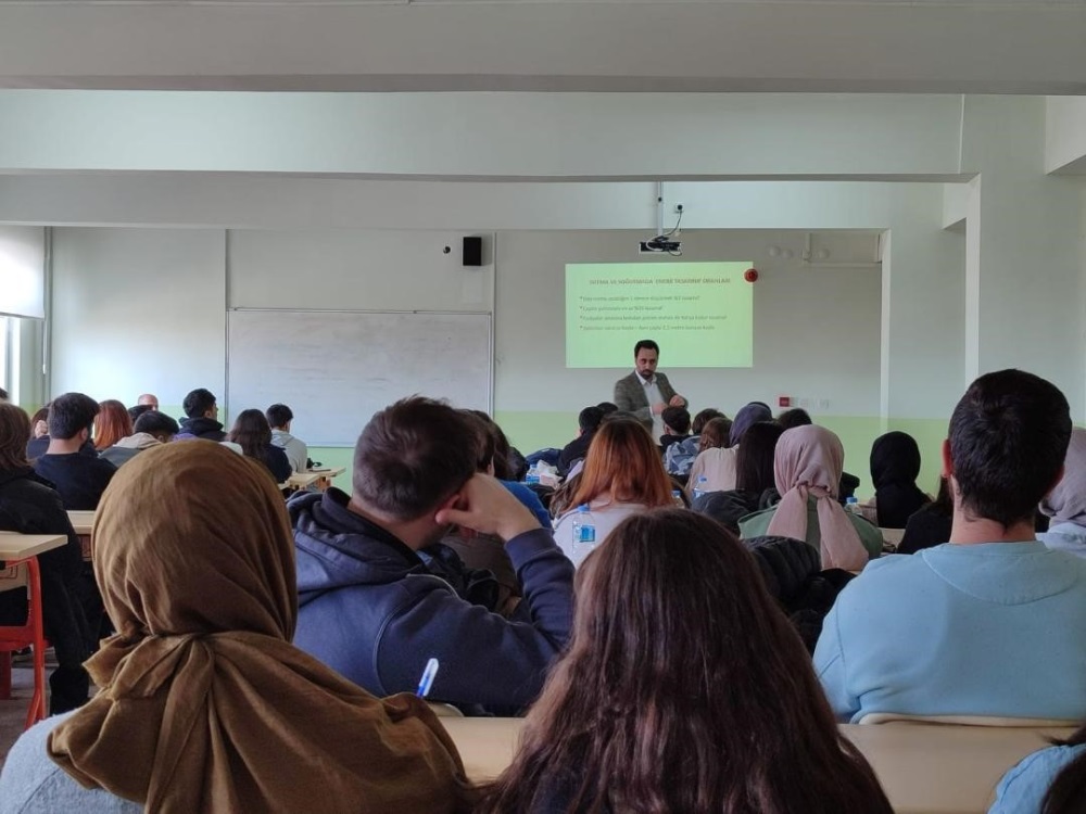 Koordinatörümüz Dr. Öğr. Üyesi Müjdat Öztürk, enerjiyi verimli ve tasarruflu kullanmanın önemine vurgu yaparak, gereksiz yanan bir lambanın bile söndürülmesinin milli bir sorumluluk olduğunu ifade etmiş ve sunumunu soru-cevap bölümüyle tamamlamıştır.