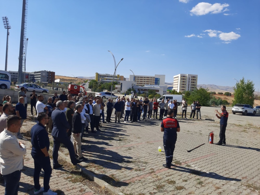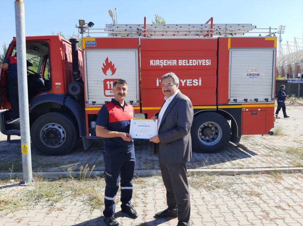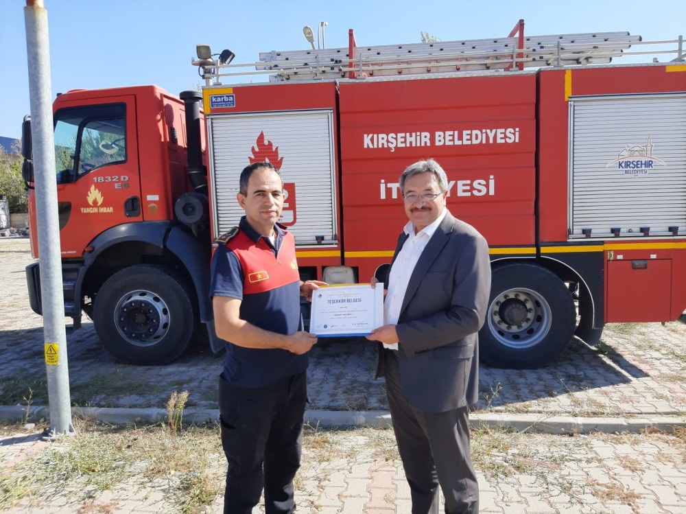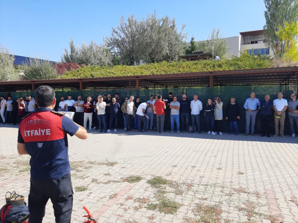 Koordinatörlüğümüz tarafından Kırşehir Belediyesi İtfaiye Müdürlüğünün desteğiyle üniversitemiz personellerine yönelik 25.09.2025 tarihinde saat 14.00-15.00 arasında Spor Bilimleri Fakültesi Öğrenci Otoparkında "Uygulamalı Yangın Eğitimi" düzenlenmiştir. Söz konusu eğitime Genel Sekreterimiz Sayın Dr. Öğr. Üyesi Hüseyin İLTER, Genel Sekreter Yardımcıları Canfer MEMOĞLU ve Harun YILDIRIM ile birlikte üniversitemiz akademik ve idari personeli kaltılmıştır. Uygulamalı yangın eğitimini veren Kırşehir Belediyesi İtfaiye Müdürlüğü çalışanları sayın Metin DAĞLI, sayın Mustafa YILMAZ ve sayın Hüseyin SULUSARAY'a Genel Sekreterimiz Dr. Öğr. Üyesi Hüseyin İLTER tarafından teşekkür belgesi verilmiştir.