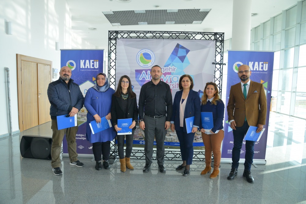 Törenin devamında, EFQM sürecine katkı sağlayan kriter komisyonu başkan ve üyelerine teşekkür belgeleri takdim edildi. Tören, Rektör Yardımcısı Prof. Dr. Hüseyin Şimşek’in “Ahiliğin İzinde Mükemmelliğe Yolculuk” sloganıyla gelecekte daha büyük başarılara ulaşma temennisi ile sona erdi. Törende, EFQM Yolculuğuna katkı veren Kriter grubu üyeleri ile hatıra fotoğrafı çekildi.