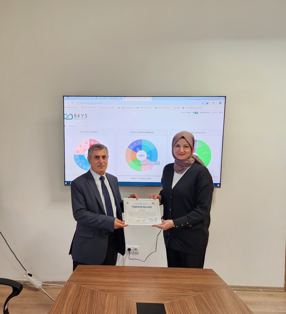 Teşekkür belgesi takdim edilen isimler arasında, önceki dönem Kalite Yönetim Koordinatörlüğü üyeleri olan Prof. Dr. Levent Urtekin, Prof. Dr. İlkay Açıkgöz Erkaya, Prof. Dr. Gülbahar Üçler, Doç. Dr. Öznur İlhan Akgiş, Dr. Öğr. Üyesi Ayşegül Turan, Enstitü Sekreteri Revza Çelik ve Rektör Danışmanı Ekrem Öztürk yer aldı.