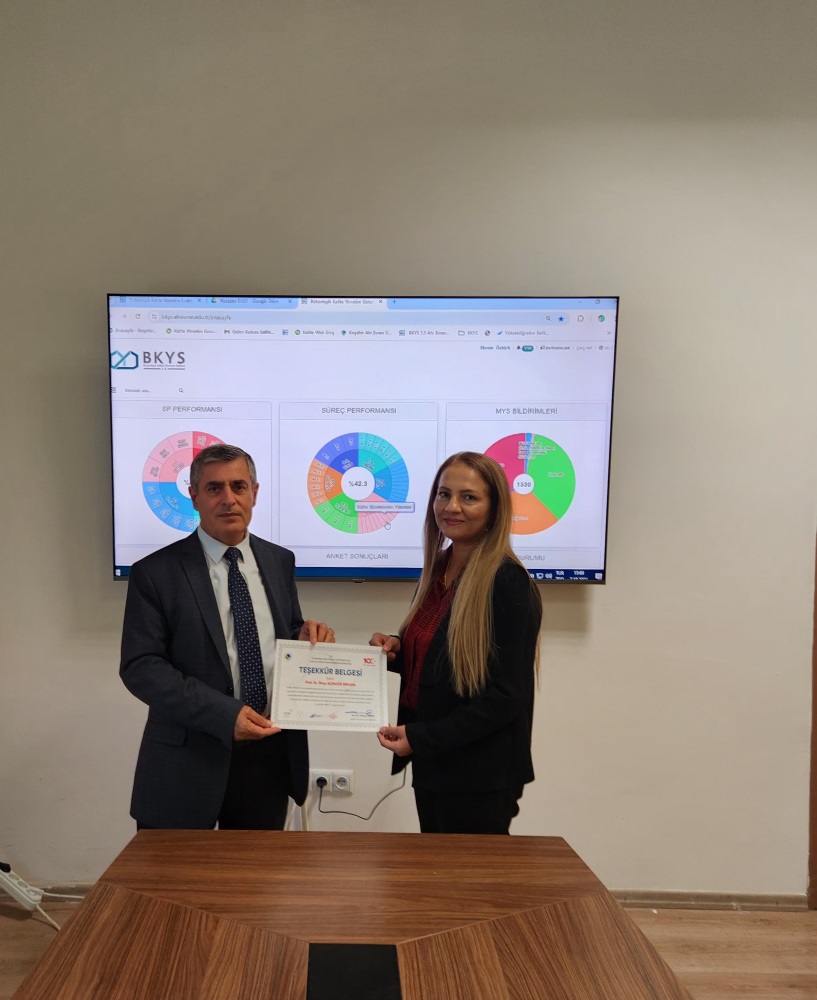 Kırşehir Ahi Evran Üniversitesi Kalite Güvence Sistemi Yönergesi'nde yapılan değişiklikle birlikte yeni kurulan Yürütme Kurulu’nun oluşturulmasıyla, önceki dönem Kalite Yönetim Koordinatörlüğü üyeliği sona eren akademisyenlere ve yöneticilere teşekkür belgeleri takdim edildi.