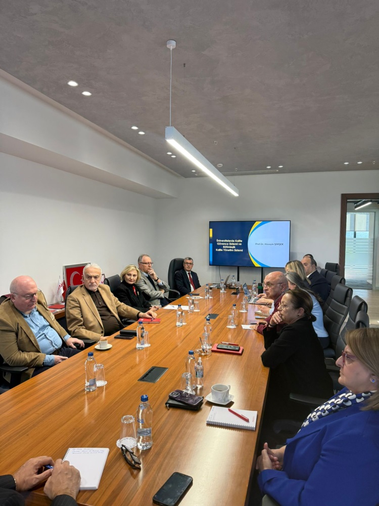 Rektör Yardımcımız ve Kalite Koordinatörümüz Prof. Dr. Hüseyin Şimşek toplantıya katılarak, üniversite bünyesinde kalite ve eğitim hizmetlerinin güvence altına alınması için geliştirilen iki önemli dijital çözüm hakkında bilgi verdi. Bütünleşik Kalite Yönetim Sistemi (BKYS) ve Ahi Yeterliliğe Dayalı Dijital Eğitim Portalı (AYDEP) uygulamalı olarak tanıtıldı.