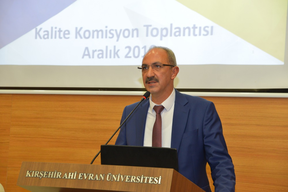 Toplantının açılış konuşmasını yapan Üniversitemiz Rektörü Prof. Dr. Vatan Karakaya, kalite sürecini hep birlikte belli bir noktaya getirdiklerini, bu toplantının 2019 yılının bir değerlendirmesi ve aynı zamanda 2020 yılının planlaması olduğunu kaydetti. Kalitede mükemmelliği yakalamaları gerektiğini ifade eden Rektör Karakaya, hedeflerinin Ahi Evran-ı Veli’nin kalite anlayışına uygun bir kalite olduğunu söyledi. Kalitenin sadece prosedür gereği bir çalışma olmaması gerektiğinin altını çizen Prof. Dr. Vatan Karakaya, kalite şuuru oluşmaya başlayan bir kurum olarak bunu içselleştirmelerinin ve pratiğe dökmelerinin önemli olduğuna dikkat çekti.