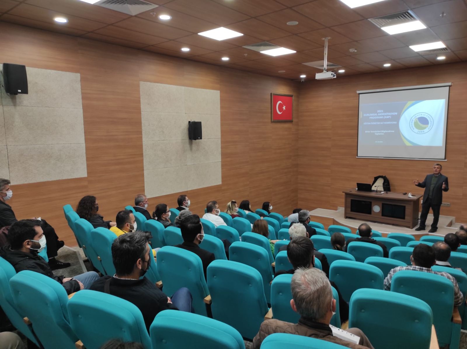 Üniversitemizin KAP Hazırlık çalışmaları kapsamında Eğitim-Öğretim Alt Komisyonu tarafından hazırlanan Eylem Planını değerlendirmek ve Birimler tarafından yapılacak iş ve işlemleri görüşmek üzere Kongre Merkezinde bir toplantı gerçekleştirildi. KAP Hazırlık Komisyonu başkanı Prof.Dr. Hüseyin ŞİMŞEK başkanlığında gerçekleştirilen toplantıya Eğitim-Öğretim komisyonu başkanı Prof.Dr. Musa ÖZATA, komisyonun üyeleri ve akademik birimlerin Eğitim-Öğretim sorumluları katıldı. KAP Hazırlık Komisyonu başkanı Prof.Dr. Hüseyin ŞİMŞEK KAP sürecinde yürütülen çalışmalar hakkında bilgi verdi.