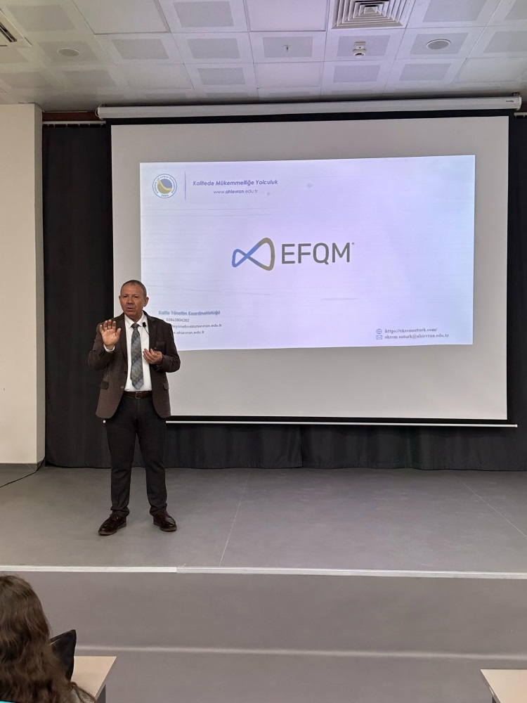 Etkinliğin açılış konuşmasını Öğrenci Kalite Elçileri Programı Akademik Sorumlusu Öğr. Gör. Sibel KOYUN gerçekleştirdi. Ardından, Kalite Yönetim Koordinatör Yardımcısı Ekrem ÖZTÜRK, uluslararası standartlarda bir yönetim modeli olan EFQM hakkında sunum yaptı. Katılımcılara kalite kültürünü içselleştirme ve sürdürülebilir başarıyı sağlama konusunda kapsamlı bilgiler verildi.