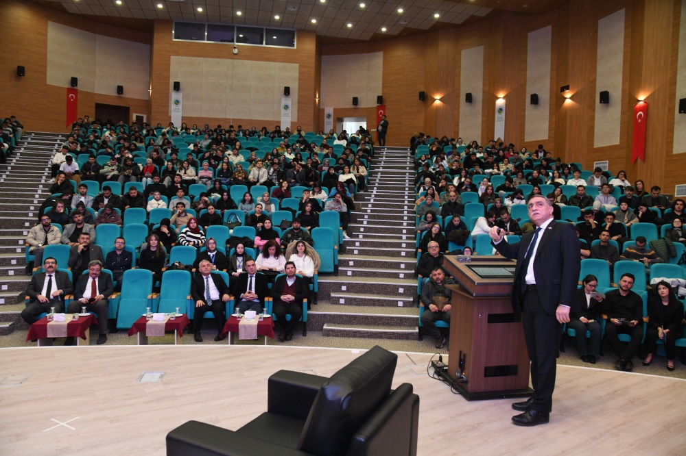 Program kapsamında Üniversitemiz Rektörü Prof. Dr. Mustafa Kasım Karahocagil, Kırşehir Ahi Evran Üniversitesi ve Kayseri Üniversitesinden 100 öğrencinin eğitim alacağı Gençler İçin Kalite Okulu’nun açılış konuşmasını gerçekleştirerek “Yükseköğretimde Kalite ve Ahilik: Değer Temelli Bir Kalite Anlayışı” başlıklı ilk dersi verdi. Rektörümüz konuşmasında, kalite kültürünün yalnızca yönetsel bir süreç değil; öğrencilerin aktif katılımıyla güçlenen, değer temelli ve sürdürülebilir bir anlayış olduğunu vurguladı.
