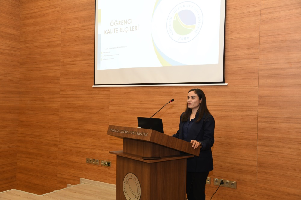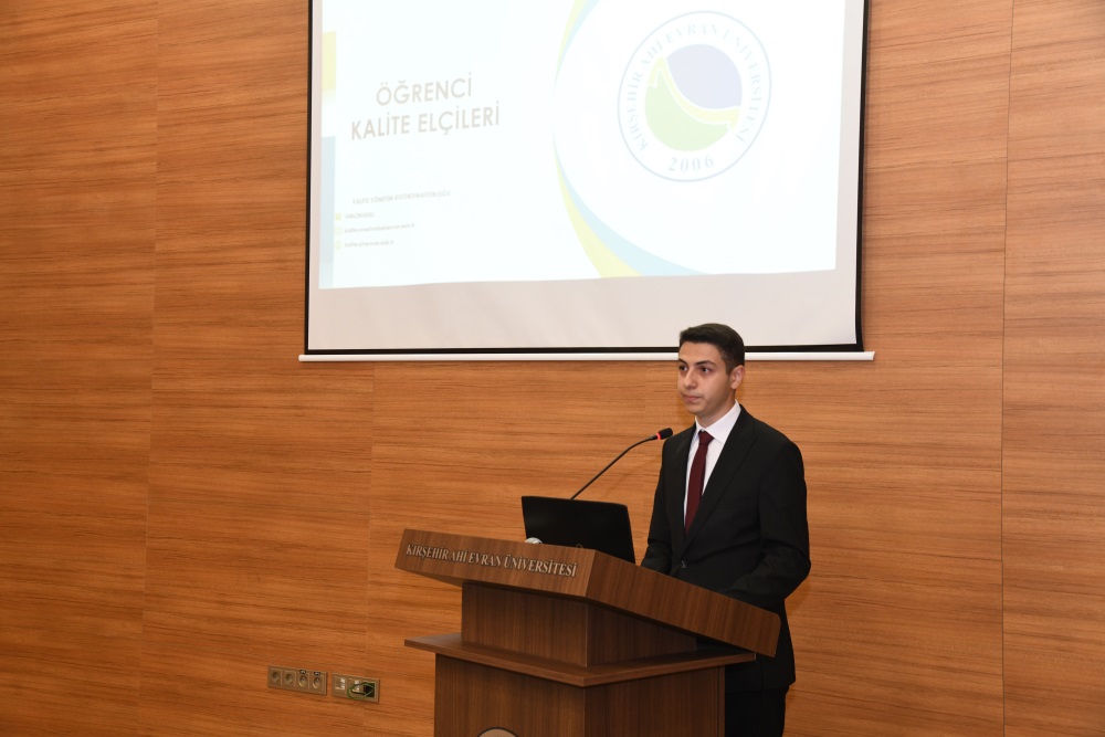 Öğrenci kalite elçileri programının açılışında konuşan öğrenci kalite elçileri temsilcisi Burak Büyük, "Kaliteyi ahiliğin bir devamı olarak gördüklerini, her bir öğrencinin ahiliğin temsilcisi ve genç ahi olduğu bilinciyle hareket ettiklerini, eğitim öğretim süreçlerinin daha da geliştirilmesine yönelik olarak karar alma süreçlerine dahil olduklarını" belirterek, üniversite kalite yönetim sisteminin güçlü ve faydalı olduğunu vurguladı.
