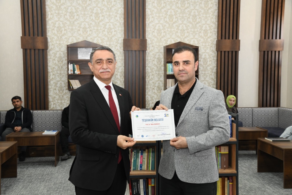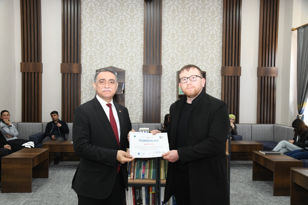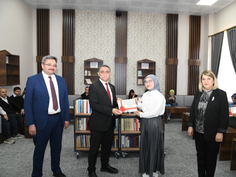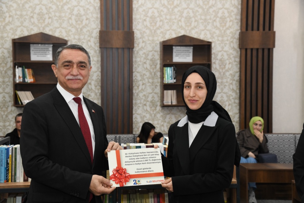 Üniversitemiz Rektörü Prof. Dr. Mustafa Kasım Karahocagil’in konuşmalarının ardından Üniversitemizin kuruluşunun 20. Yılına özel Üniversitemizin kuruluşundan bu tarafa 2011 yılı itibariyle Kütüphane ve Dokümantasyon Daire Başkanlığı hizmetlerinden faydalanarak en çok ödünç kitap alan bir akademik ve bir idari personelimize teşekkür belgeleri verildi. Ayrıca merkez kütüphanemizden en fazla ödünç kitap alan 3 öğrenciye de hediyeleri verildi. Program, günün anısına çektirilen hatıra fotoğrafının ardından sona erdi.
