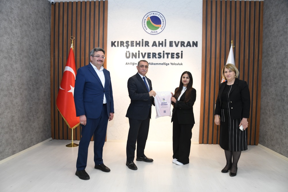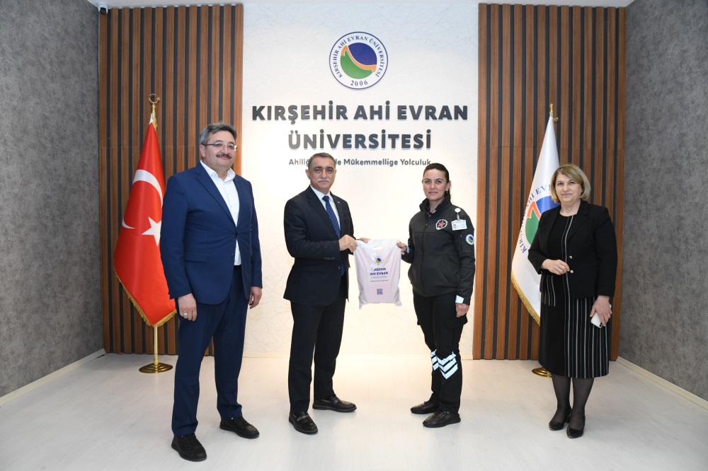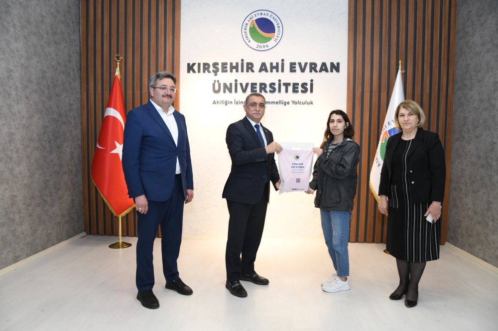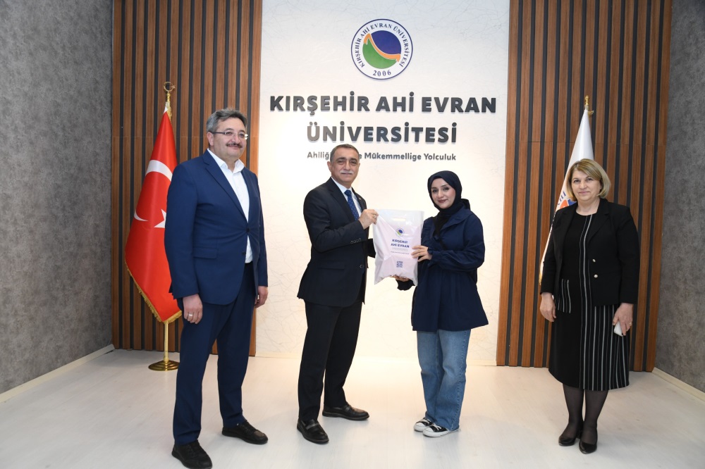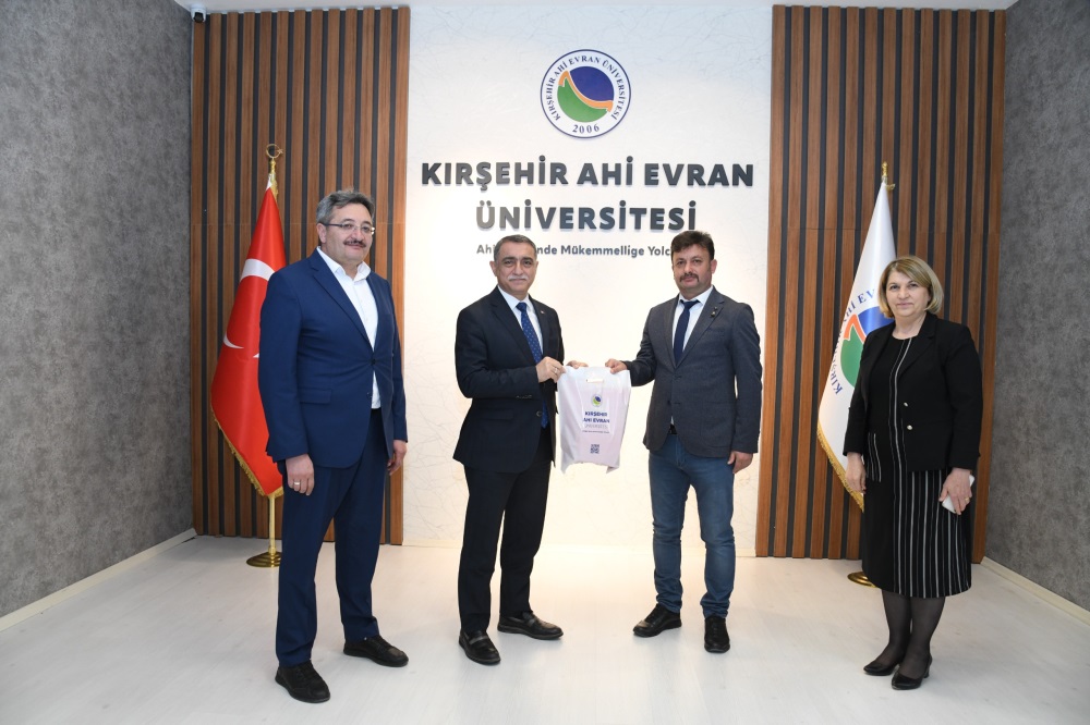 Kırşehir Ahi Evran Üniversitesi Kütüphane ve Dokümantasyon Daire Başkanlığı olarak bu yıl "Üreten Kütüphaneler" temasıyla kutlanan 61. Kütüphane Haftası etkinlikleri kapsamında Üniversitemiz Rektörü Sayın Prof. Dr. Mustafa Kasım KARAHOCAGİL makamında ziyaret edildi. Ziyarette Üniversitemiz Genel Sekreteri Dr. Ögr. Üyesi Hüseyin İLTER, Küt. Dok. Daire Başkanı Dilber SARIKAYA ve Kütüphane Daire Başkanlığı çalışanlarının hazır bulundu.