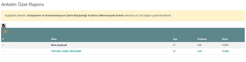 08 Ağustos 2018 Tarihli - Kullanıcı Memnuniyet Anketi Sonuç Verileri