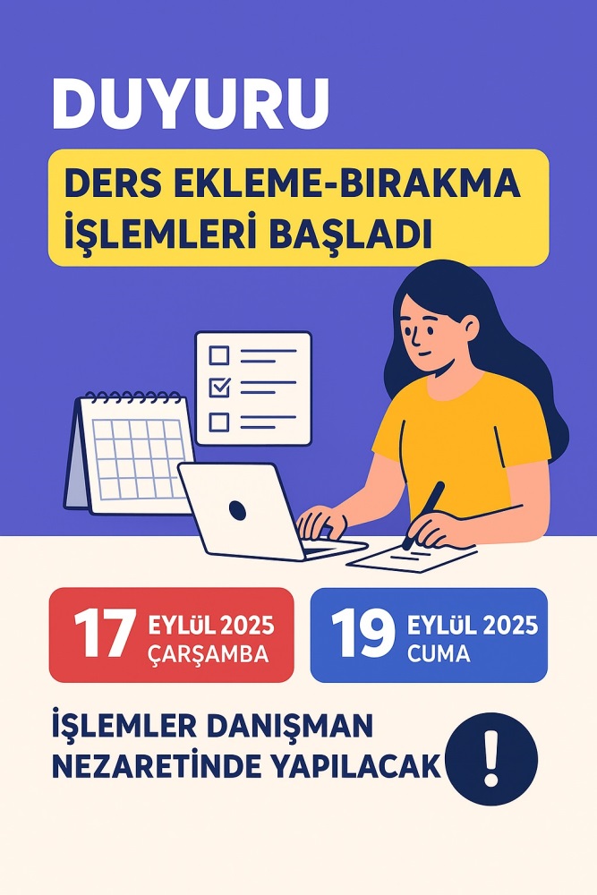 Üniversitemizde 2025 Güz dönemi ders ekleme-bırakma işlemleri bugün başladı.