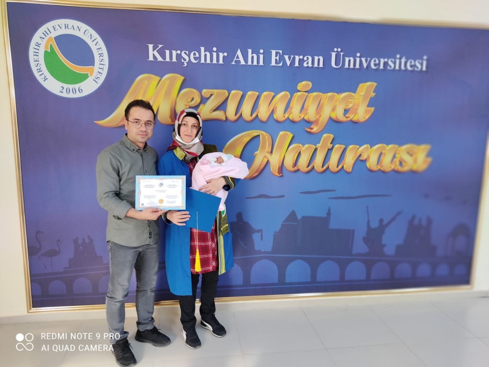 Lisans eğitimini tamamlayan F. E.TERZİOĞLU, diploma sevincini bebeğiyle birlikte yaşadı.