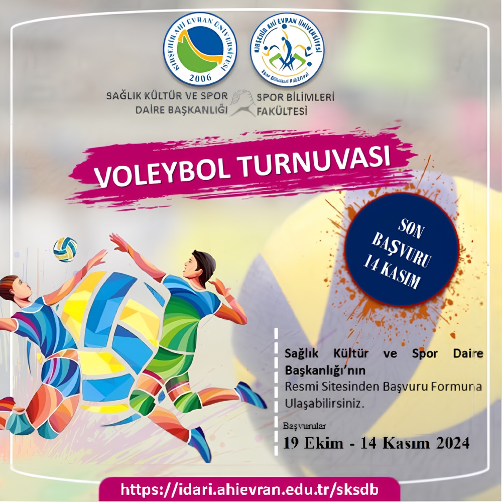 - Üniversitemiz Sağlık Kültür ve Spor Daire Başkanlığı ve Spor Bilimleri Fakültesi iş birliğiyle öğrencilerimiz için düzenlenecek olan Voleybol Turnuvası'na tüm bölümler davetlidir.