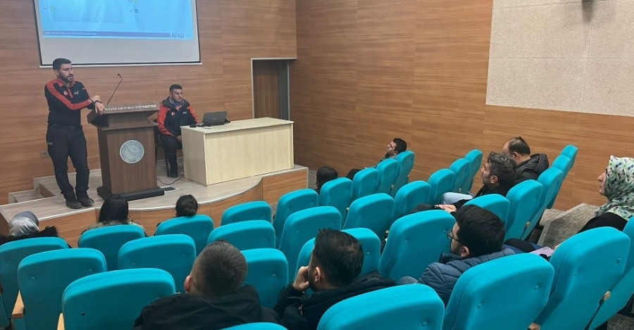 Üniversitemiz Afet Yönetimi Koordinatörlüğünün Koordinasyonu ile 12 Aralık 2024 tarihinde Kırşehir İl Afet Müdürlüğü tarafından Başkanlığımız ve Öğrenci İşleri Daire Başkanlığı personeline "Afet Farkındalık Eğitimi" verildi. Ahi Evran Kongre ve Kültür Merkezi Fuat Sezgin Salonunda gerçekleşen eğitimde “Afet kavramının tanımı, Afetlere karşı alınabilecek önlemler, Afet ve acil durum çantası hazırlamada dikkat edilecek unsurlar, Afet sonrasında yapılması gerekenler” gibi konular ele alındı. Eğitime katılan personellerimiz eğitimin çok verimli geçtiğini belirterek memnuniyetlerini bildirdiler.