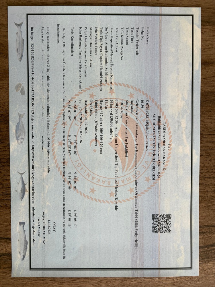 Ayrıca, tıbbi sülük yetiştiriciliği gibi spesifik ve yasal düzenlemelere tabi bir alanda alınan bu resmi izin, fakültemizin kalite güvencesi, mevzuata uyum ve bilimsel üretim kapasitesi açısından ulaştığı düzeyi de ortaya koymaktadır.