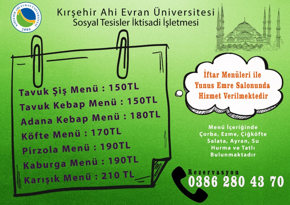 İftar Menüleri İle Yunus Emre Salonunda Verilmektedir.