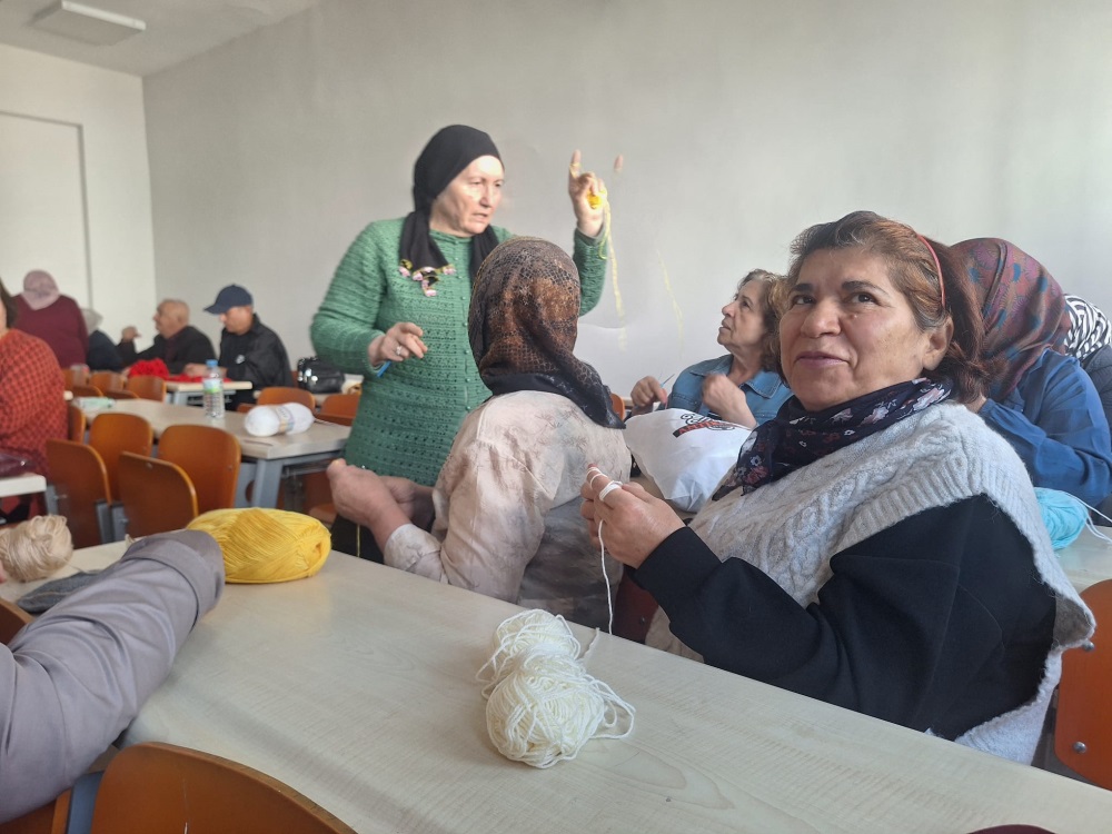 Perşembe günü ise haftanın el emeği dolu bölümü olan Örgü Dersi ile başladı. Teslime Güzel eşliğinde öğrenciler, önceki haftalarda temelleri atılan örgü teknikleriyle renkli ve özgün ürünlerini şekillendirmeye devam etti. Sınıf ortamı, hem sohbet hem üretim dolu keyifli anlara sahne oldu.