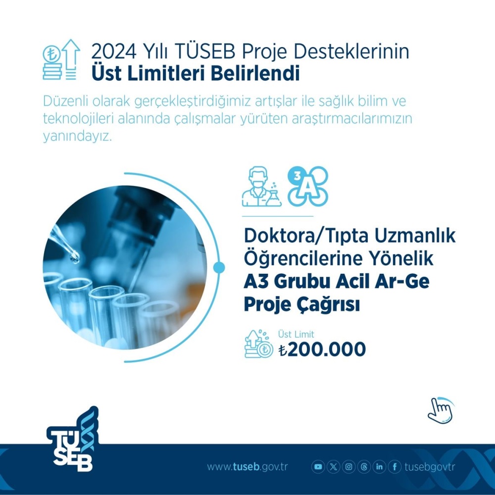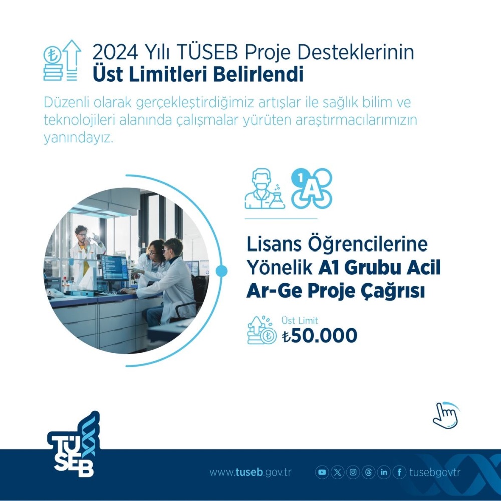 🔊2024 Yılı TÜSEB A Grubu Acil Ar-Ge Proje Destekleri Üst Limitleri Belirlendi.