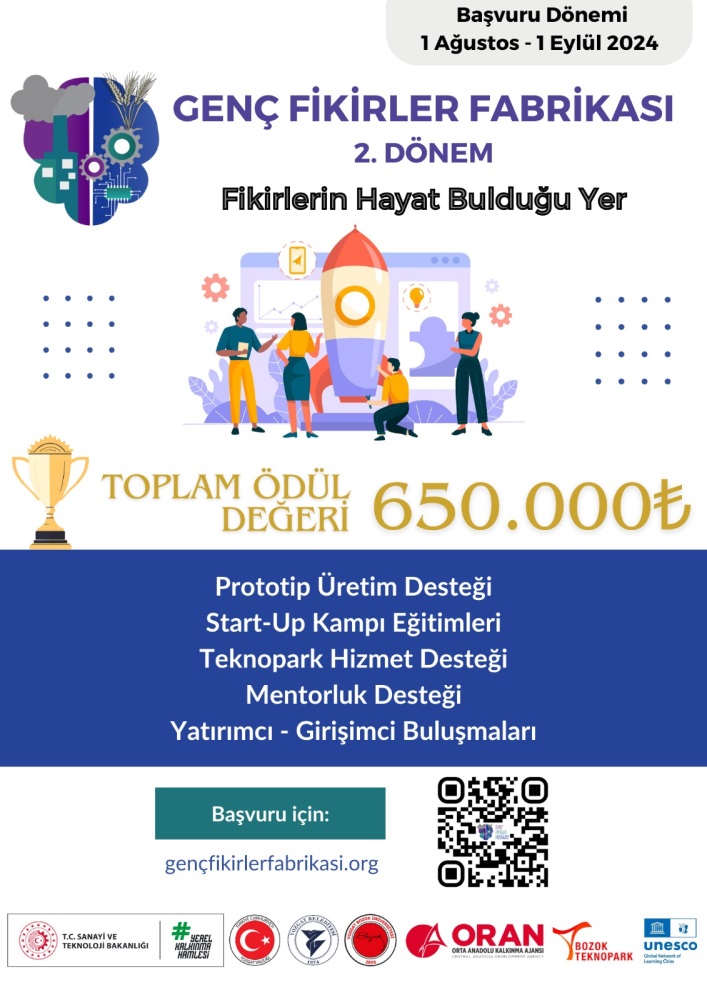 Yozgat Valiliği, Yozgat Belediyesi, Orta Anadolu Kalkınma Ajansı (ORAN) ve Bozok Teknopark’ın ortaklığında düzenlenen Genç Fikirler Fabrikası 2. İş Fikri Yarışması için başvurular başlamıştır!