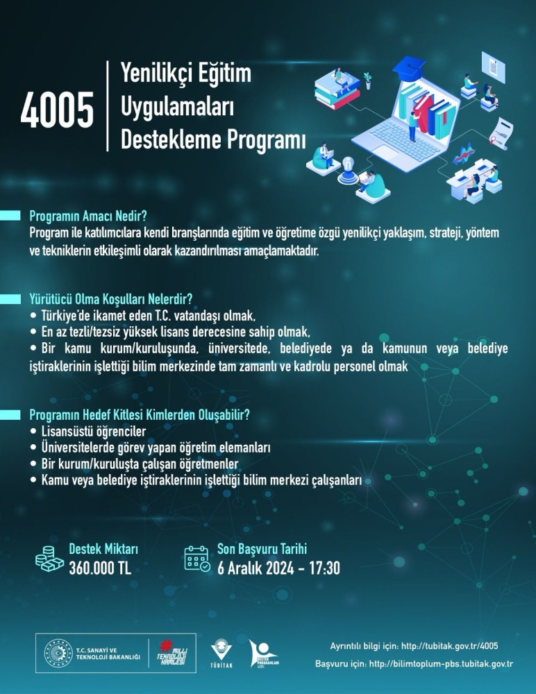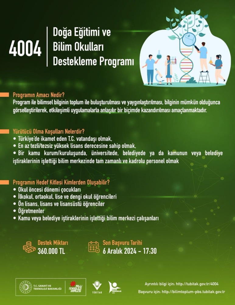 📢 Bilim ve Toplum Destek Programları “4004-Doğa Eğitimi ve Bilim Okulları” ve “4005-Yenilikçi Eğitim Uygulamaları” çağrıları yayınlandı!