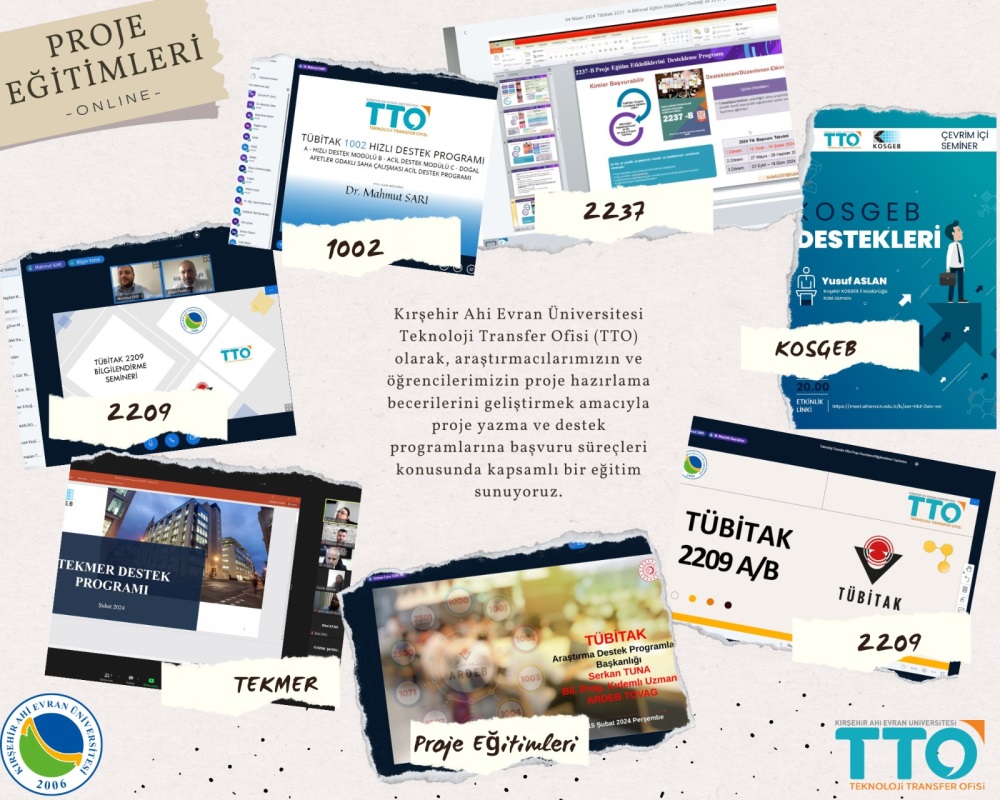 Üniversitemiz, öğrencilerimizin bilimsel projelere aktif katılımını sağlamak ve araştırma yetkinliklerini artırmak amacıyla geniş kapsamlı eğitim faaliyetlerini sürdürüyor. Bu kapsamda, Teknoloji Transfer Ofisi tarafından çevrimiçi olarak düzenlenen TÜBİTAK 2209, KOSGEB destekleri, 1002, 2237 gibi destekleme programları proje yazma eğitimleri, öğrencilerimizin destek programlarına yönelik ilgisini artırırken başarılı projelere adım atmaları için gerekli bilgi ve deneyimi kazanmalarına katkı sağladı. Eğitimlerde, her bir destek programının süreçleri hakkında kapsamlı bilgiler sunulurken, başvuru aşamalarına dair somut örnekler paylaşıldı ve katılımcıların soruları uzmanlar tarafından yanıtlandı. Üniversitemiz, bu tür eğitimlerle öğrencilerimizi bilimsel araştırmalar konusunda desteklemeye ve projelerini hayata geçirmeleri için gerekli altyapıyı sağlamaya devam edecektir.