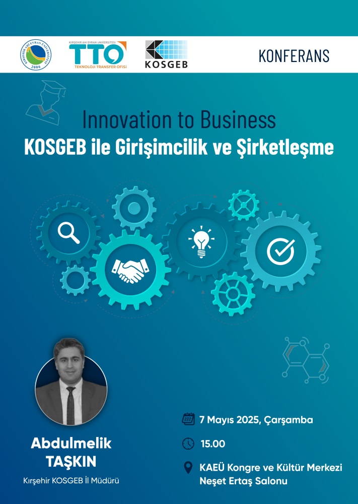 Kırşehir Ahi Evran Üniversitesi Teknoloji Transfer Ofisi (TTO) tarafından organize edilen, girişimcilik ve şirketleşme süreçlerine yönelik önemli bir konferans sizleri bekliyor.