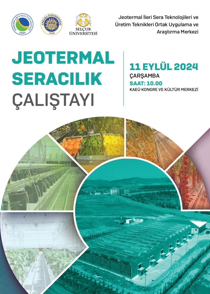 Kırşehir Ahi Evran Üniversitesi koordinatörlüğünde, Ankara Üniversitesi ve Selçuk Üniversitesi iş birliğiyle kurulan "Jeotermal İleri Sera Teknolojileri ve Üretim Teknikleri Ortak Uygulama ve Araştırma Merkezi (JİSTUAM)" kapsamında, 11 Eylül 2024 Çarşamba günü saat 10:00'da Kırşehir Ahi Evran Üniversitesi Kongre ve Kültür Merkezi'nde "Jeotermal Seracılık Çalıştayı" düzenlenecektir.