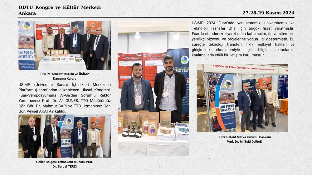 Teknoloji Transfer Ofisi UAM, Ulusal Üniversite Sanayi İş birliği Merkezleri Platformu (USİMP) tarafından 27-29 Kasım 2024 tarihleri arasında düzenlenen ÜSİMP Ulusal Patent Fuarı ve Kongresi’ne patent portföyü ile katılarak üniversite-sanayi iş birliğine yönelik önemli temaslarda bulundu. Etkinliğe katılan Rektör Yardımcısı Prof. Dr. Ali Güneş’te TTO ekibini ziyaret ederek stantlarda incelemelerde bulundu. Etkinlik süresince Türk Patent ve Marka Kurumu Başkanı Prof. Dr. M. Zeki Durak, OSTİM Yönetim Kurulu Başkanı Orhan Aydın, Ostim Teknopark Yönetim Kurulu Üyesi ve Teknoloji Transfer Ofisi Müdürü Gökhan Topal ile ÜSİMP Danışma Kurulu Üyesi Hamza AkçaGöller Bölgesi Teknokent Genel Müdürü Prof. Dr. Serdal Terzi ve birçok katılımcı standımızı ziyaret etti.